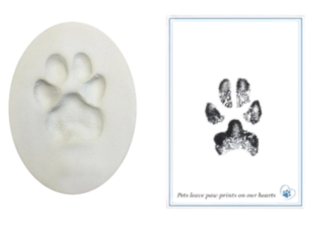 Some of our keepsake packages can be customized to reflect your family’s wishes. For example, two ink paw prints or a clay paw print paired with an ink nose print. Please call to speak with a Care Coordinator so we can help you choose the option that feels most meaningful.
